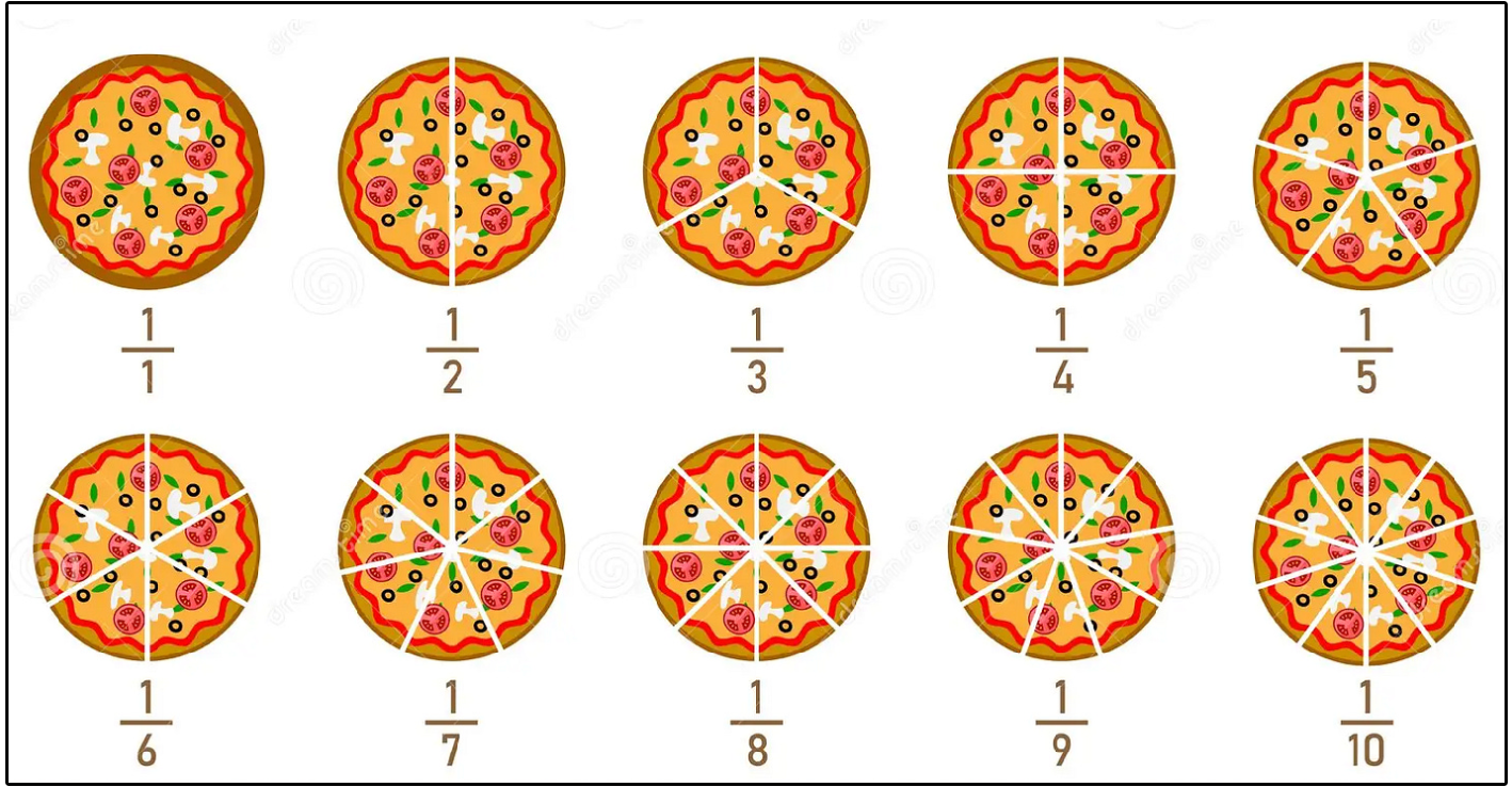 Imagine a pizza with 10 slices, where each slice represents a share of the company.