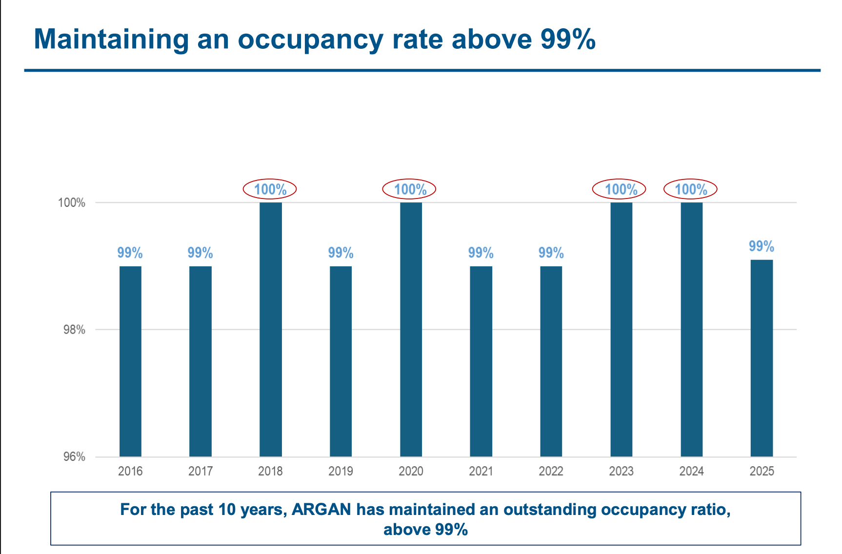 We can see evidence of Argan’s competitive advantages through their occupancy rates above 99%.