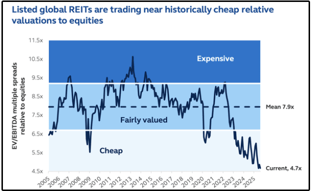But REITs are currently trading at their lowest valuations in decades.