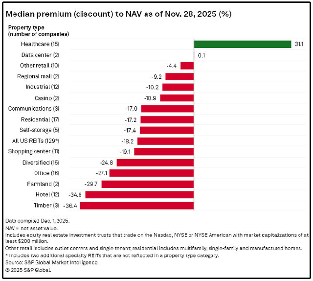 Right now, nearly every single sector within the REIT market is trading at a severe discount to what their underlying real estate is worth right now.
