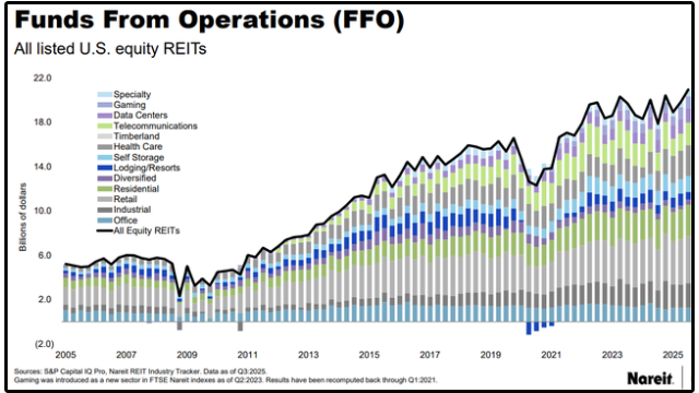 Mainly because REIT accounting includes heavy depreciation that doesnât reflect the real economics of property portfolios.