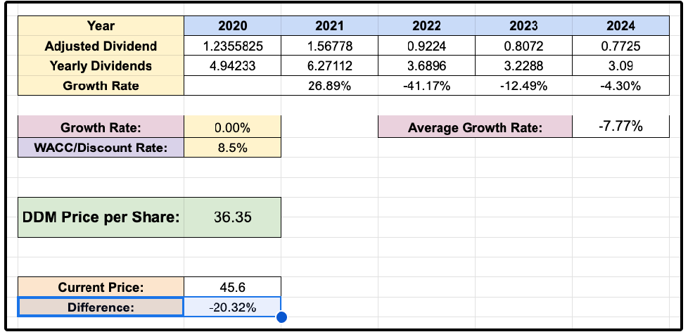 Ironically, assuming 0% dividend growth, this stock could still have 20% more downside.