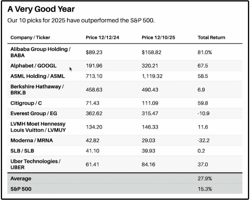 Barronâs list (as of 12/10/25) has outperformed by a wide margin.