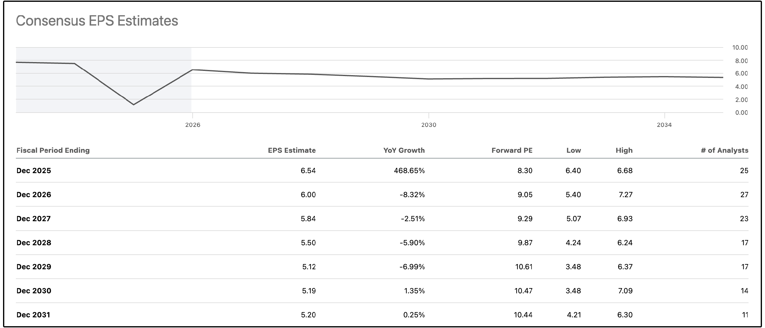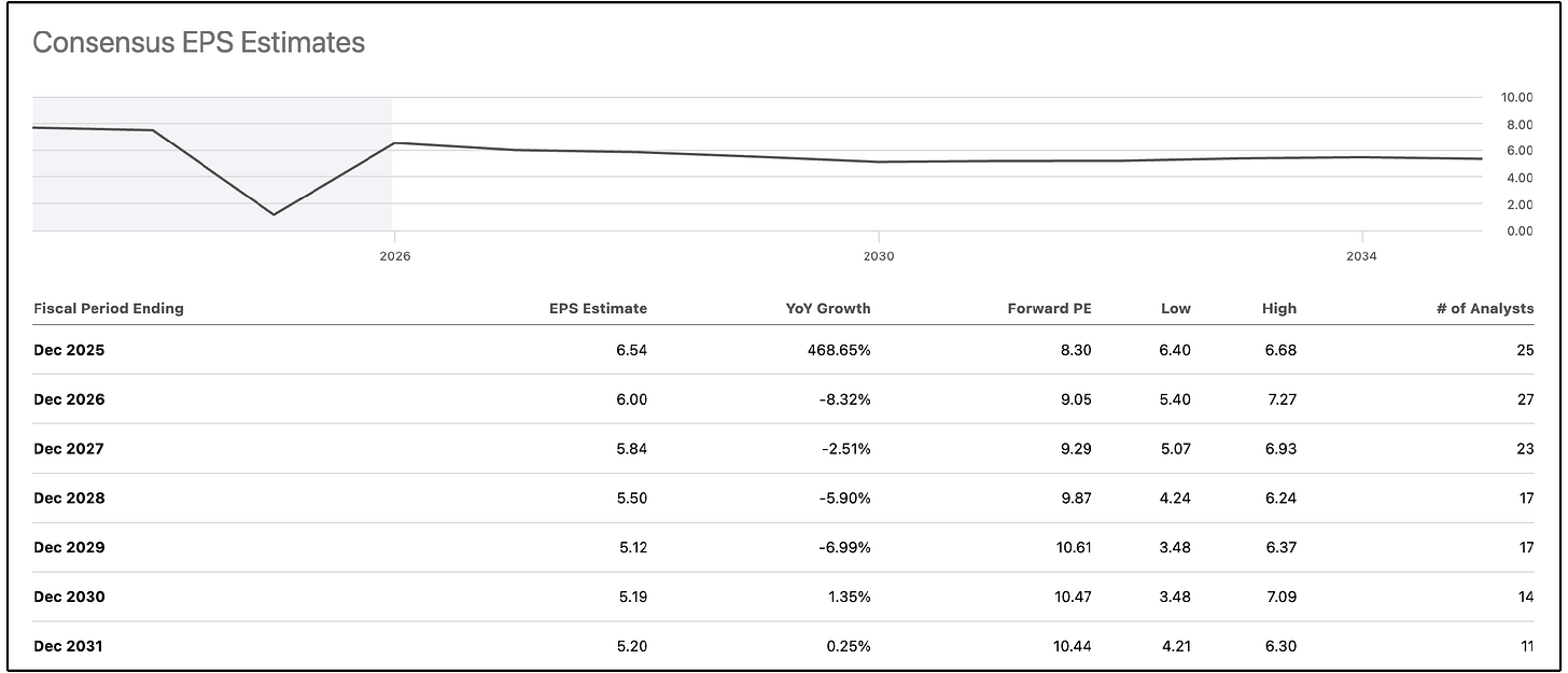 Wall Street is incredibly pessimistic about their product pipeline, and is projecting negative earnings growth over the next 5 years.