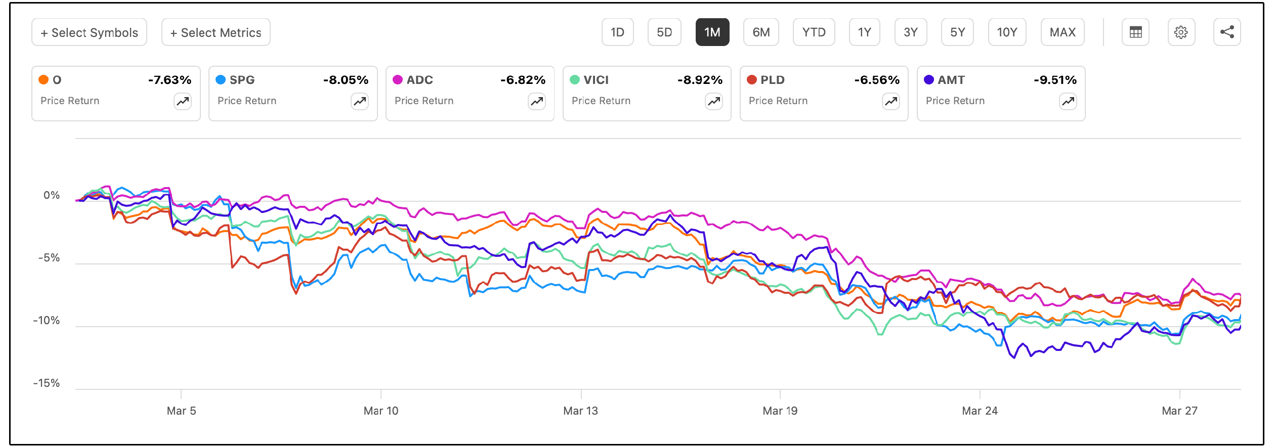 In fact, most REITs were down this month anywhere from 7% to 10%!