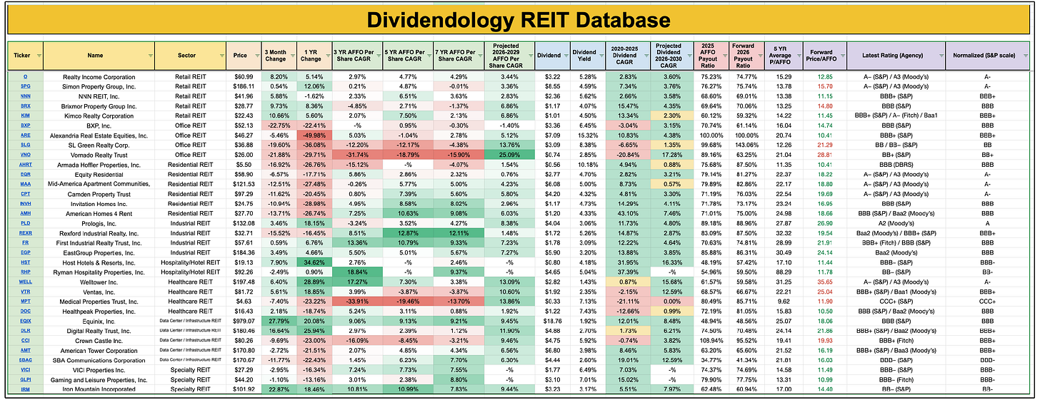 Members of Dividendology have access to the Dividendology REIT Database at anytime.