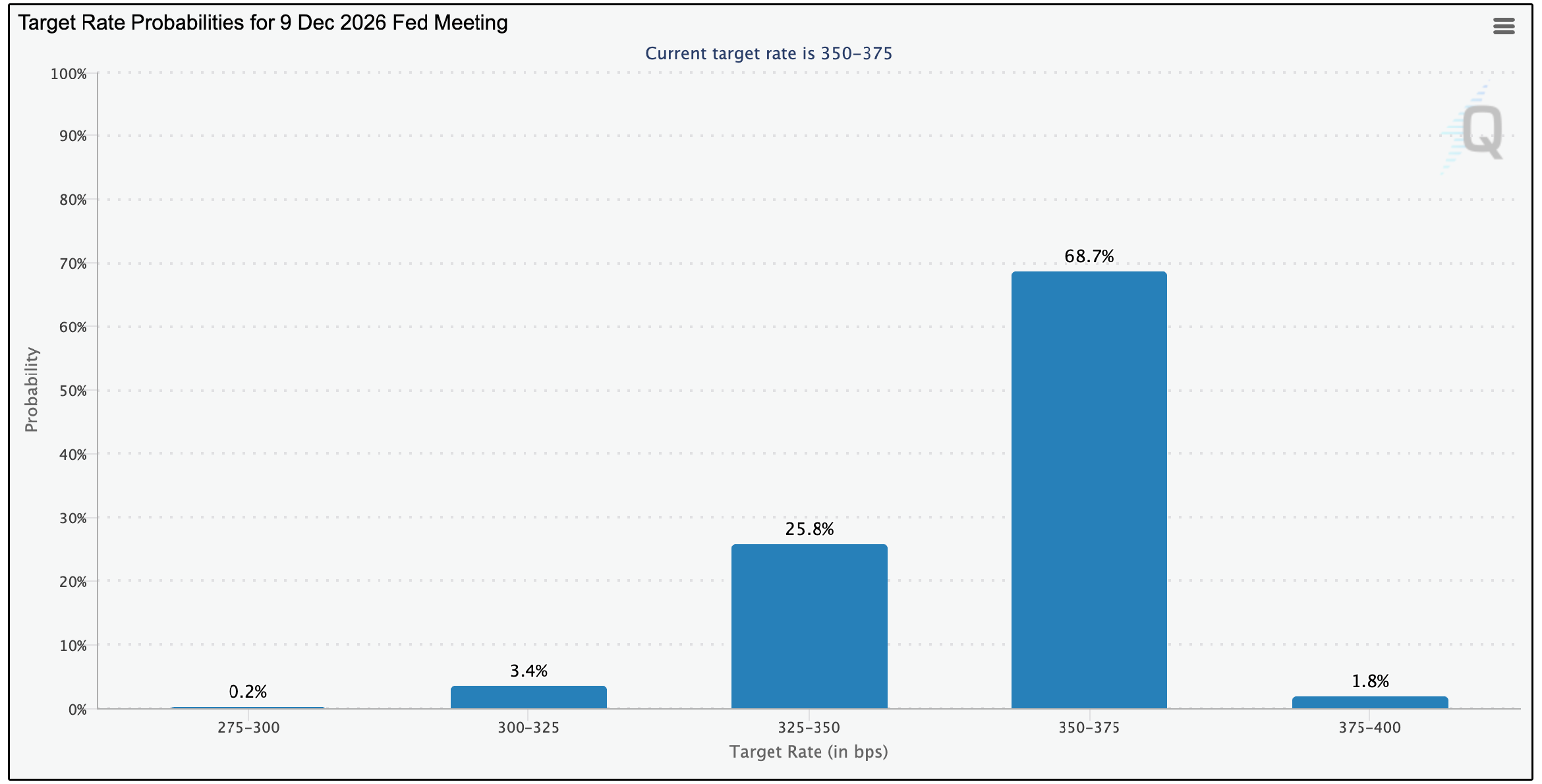 The market is now projecting a 68.7% chance we don’t see any rate cuts by December of 2026.