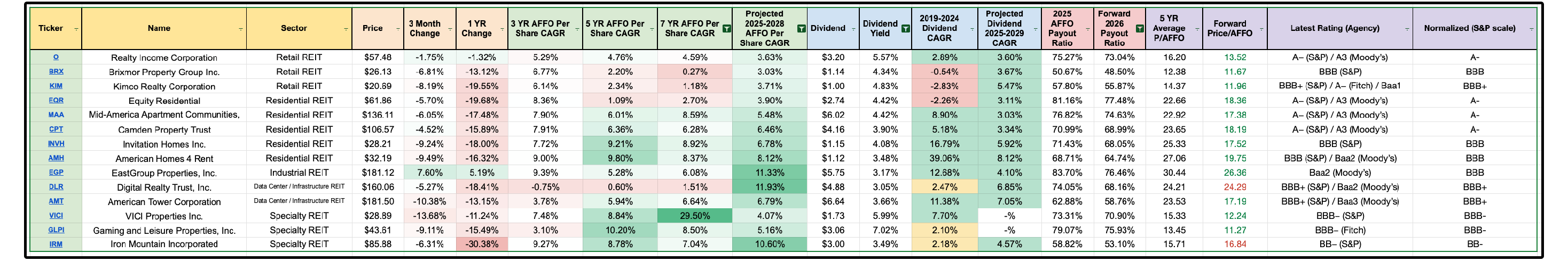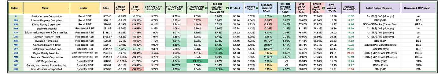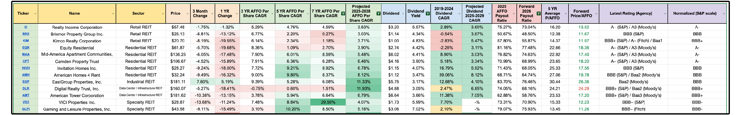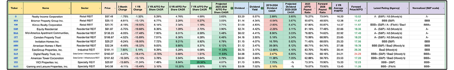 Obviously there is more to assess when it comes to valuations, and the rate at which they can grow AFFO per share heavily impacts the multiple that REITs deserve to trade at.