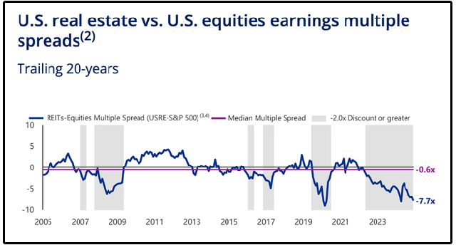 When REITs have traded at a discount of -2.0x or greater to U.S. equities, the average forward returns have been impressive: