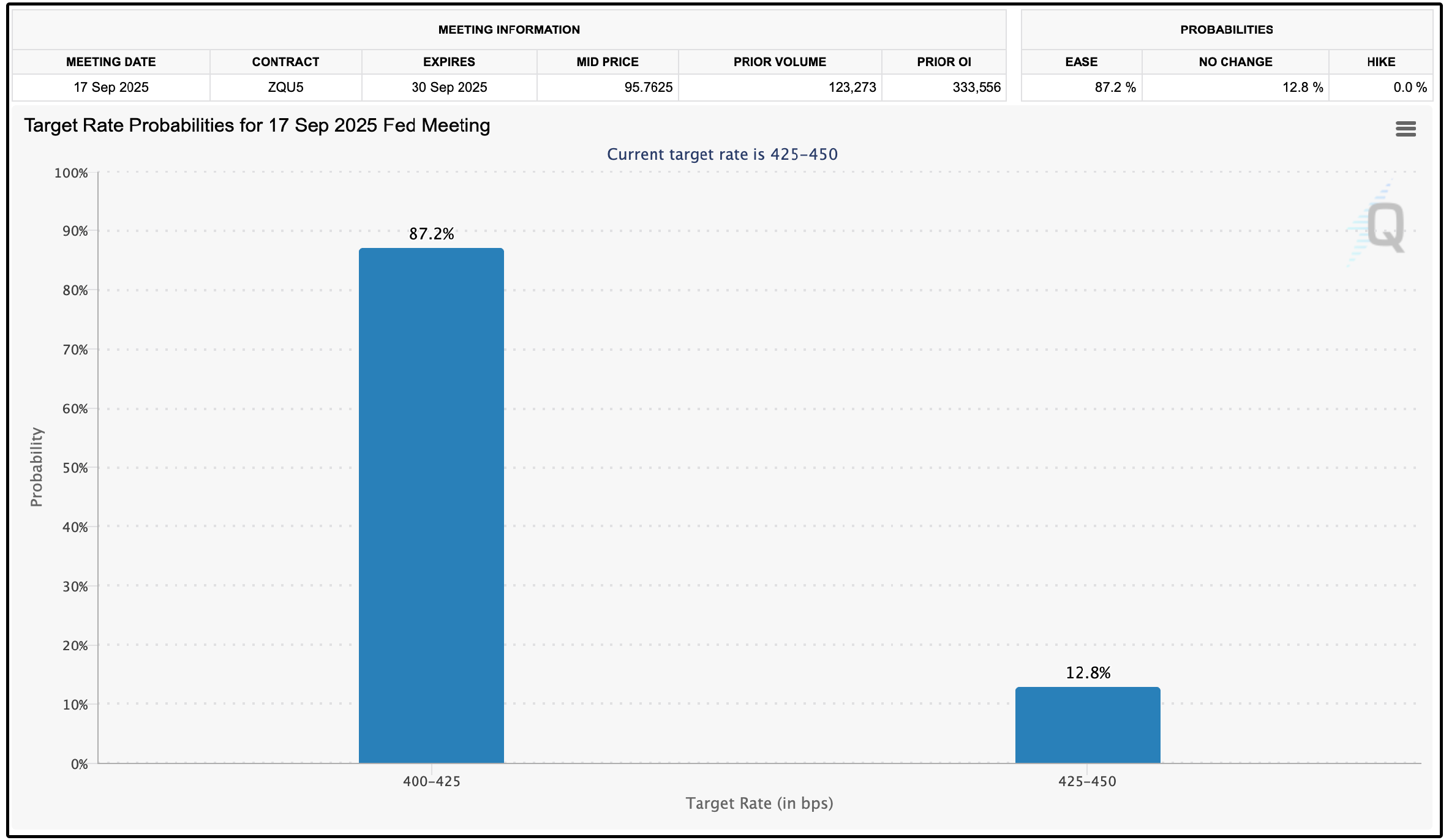 There is currently an 87.2% chance that we will see rate cuts next month.