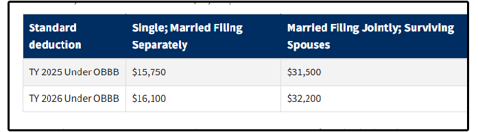 Because of the One Big Beautiful Bill Act (OBBBA) the standard deductions have been increased for 2026, and subsequently for future years.