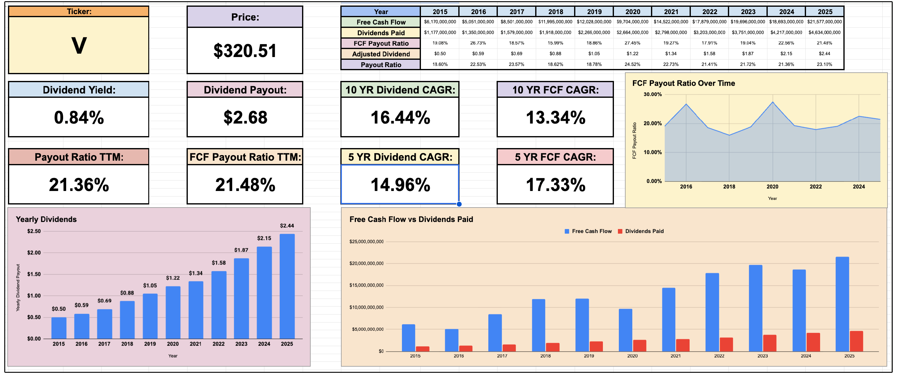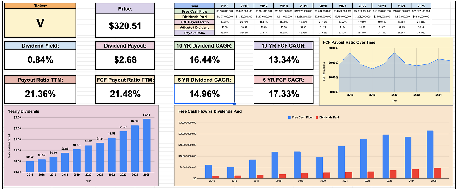 For example, Visa’s average 5 year dividend growth rate is 14.96!