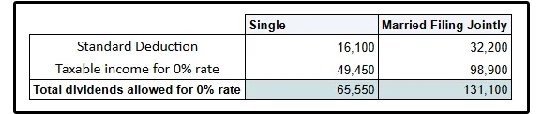 If you are filing as single, you can generate $65,550 of qualified dividends and pay $0 in federal taxes. That’s equivalent to almost an $85,000 salary!