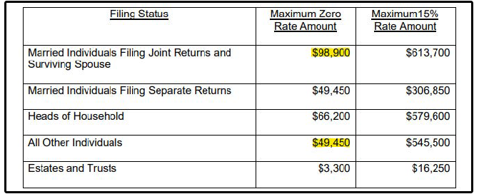 According to the IRS, if your taxable income is less than $98,900 and you file jointly, you will pay $0 in long term capital gains tax.