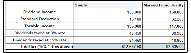 Say you generated $150,000 of qualified dividends, here’s how it would look: