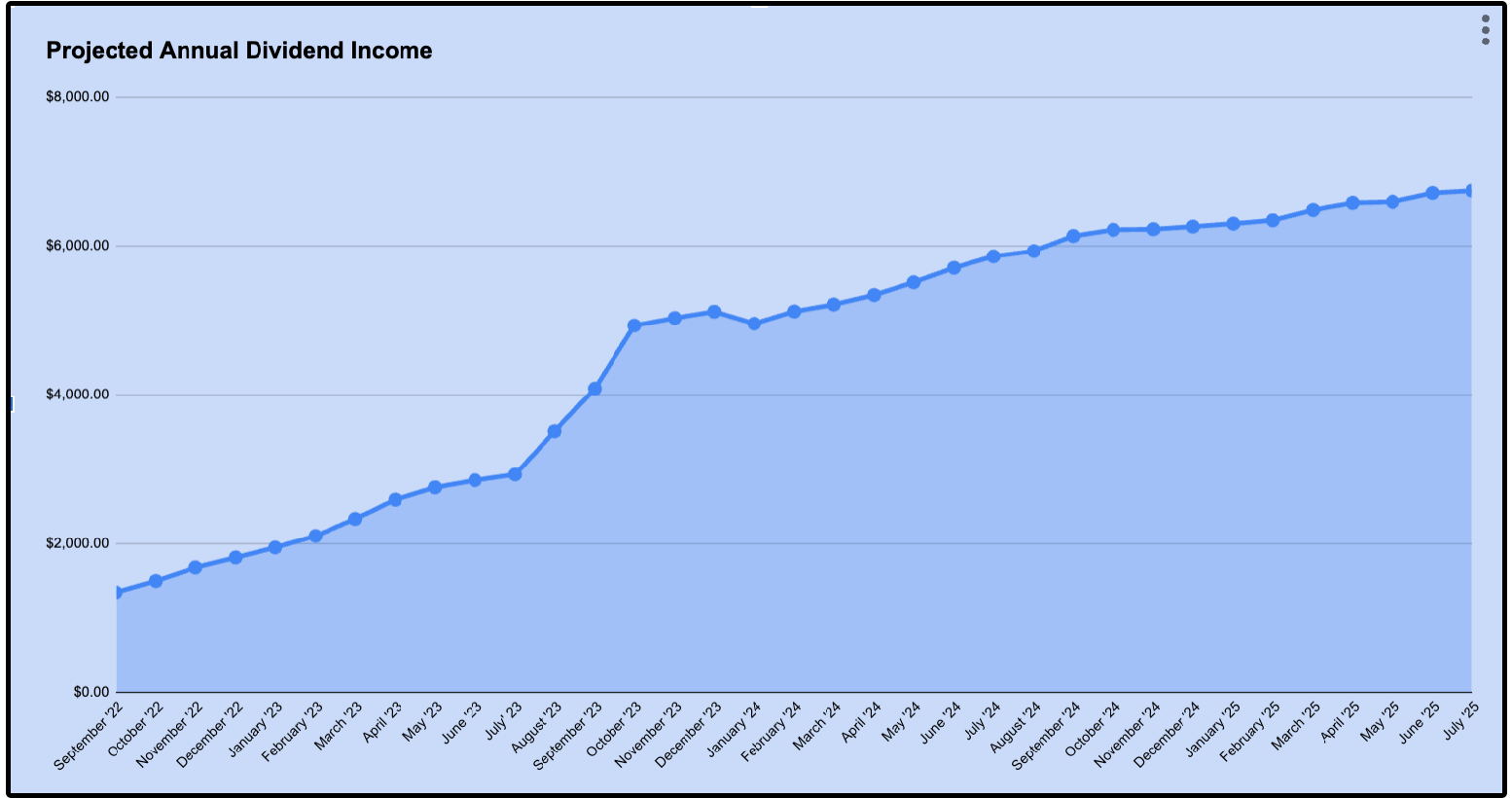 But what is even more exciting, is seeing my projected annual dividend income climb higher every single month.
