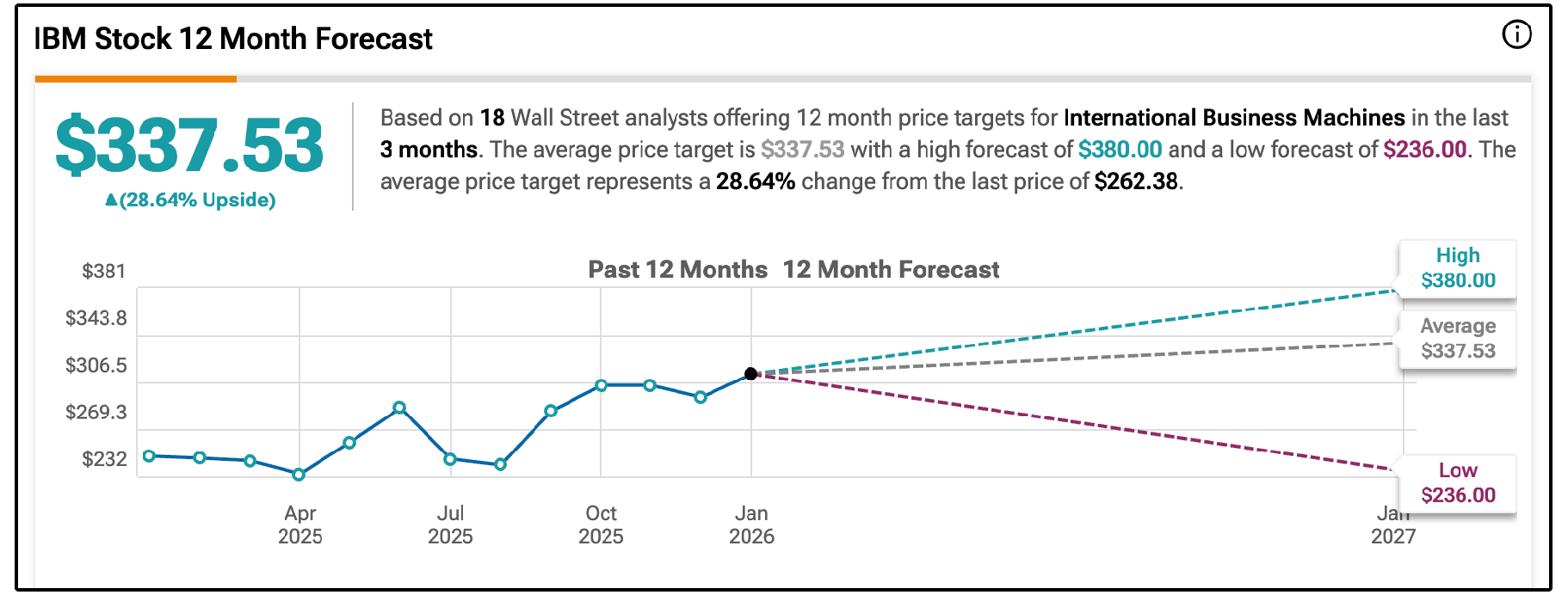 Despite this, Wall Street seems to be caught up in the AI hype, giving this stock a price target that gives IBM 28.64% upside.