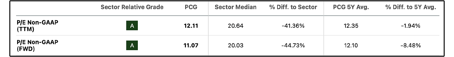 This is reflected in the valuation, as PCG is trading at a discount to their historical valuation multiples, despite the fact they are now growing earnings at a higher rate.