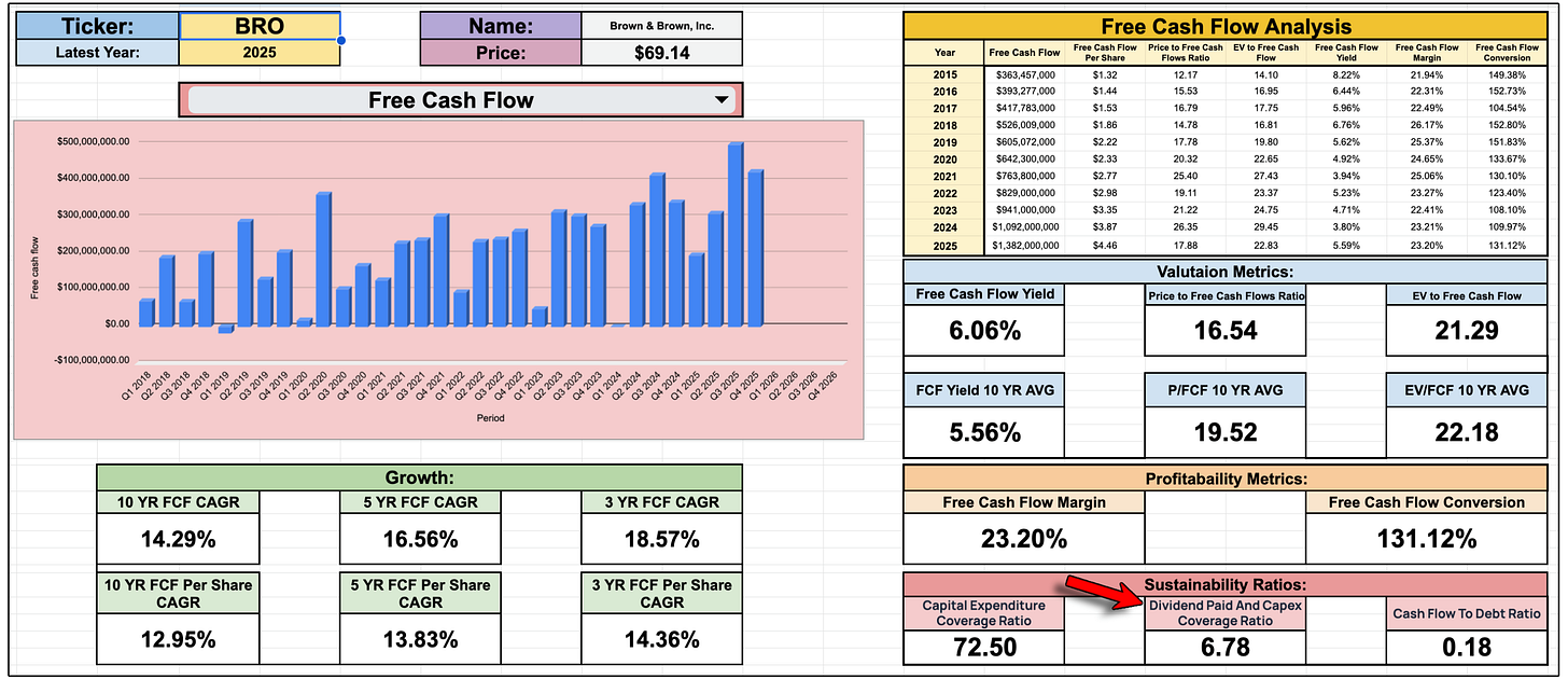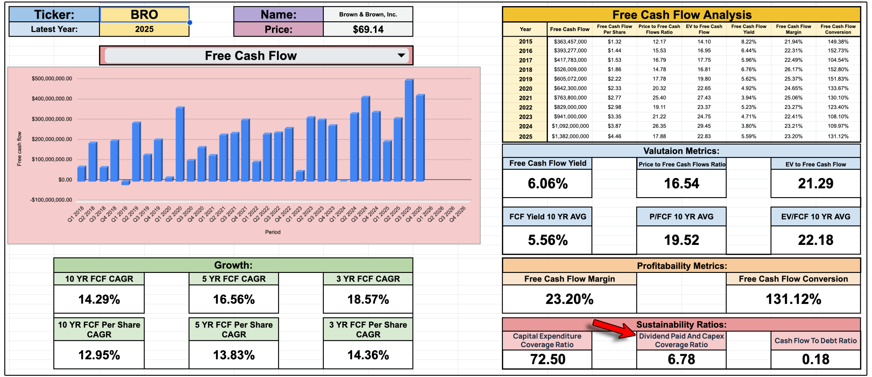 In fact, this model is so capital light that BRO has a dividend and Capex coverage ratio of 6.78!