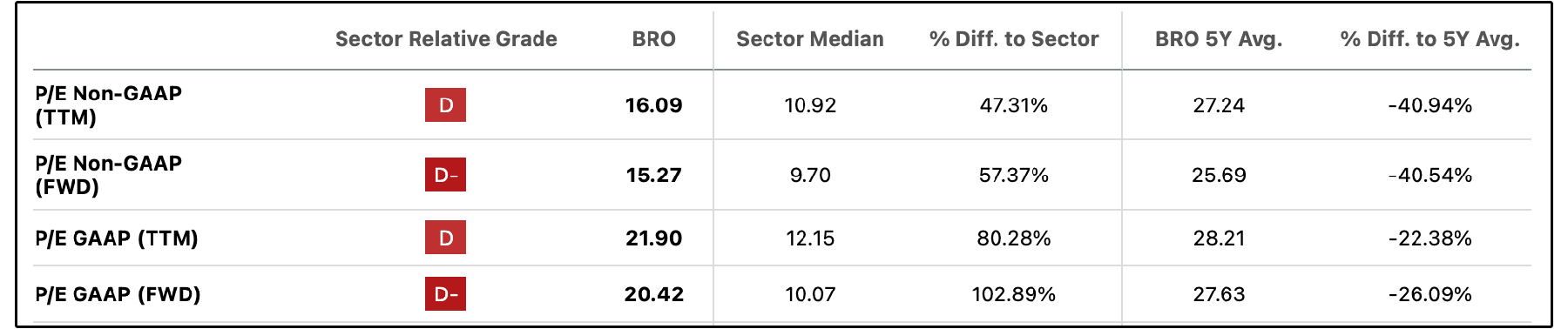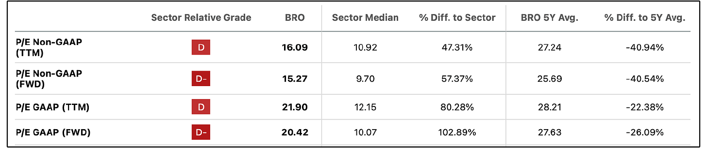 BRO currently trades at a significant discount to its historical valuation multiples.