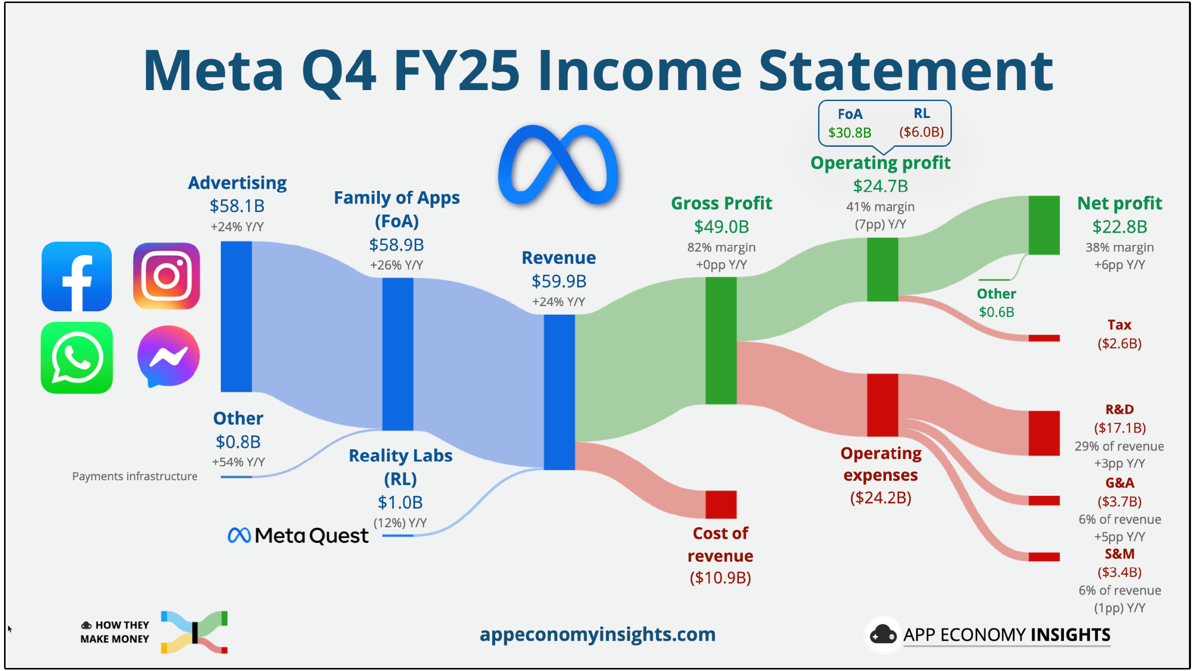 Roughly 99% of Meta’s revenue comes from advertising across platforms like: