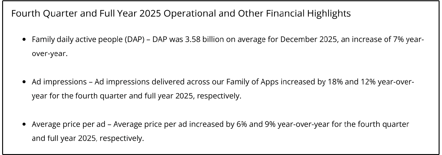 In Meta’s most recent results, all three metrics moved in the right direction. Daily active users grew 7% year-over-year, ad impressions increased 18%, and the average price per ad rose between 6% and 9%.
