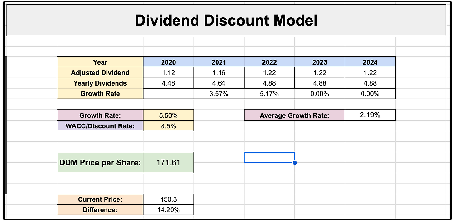 Assuming 5.5% dividend growth moving forward, the company has over 14% upside.