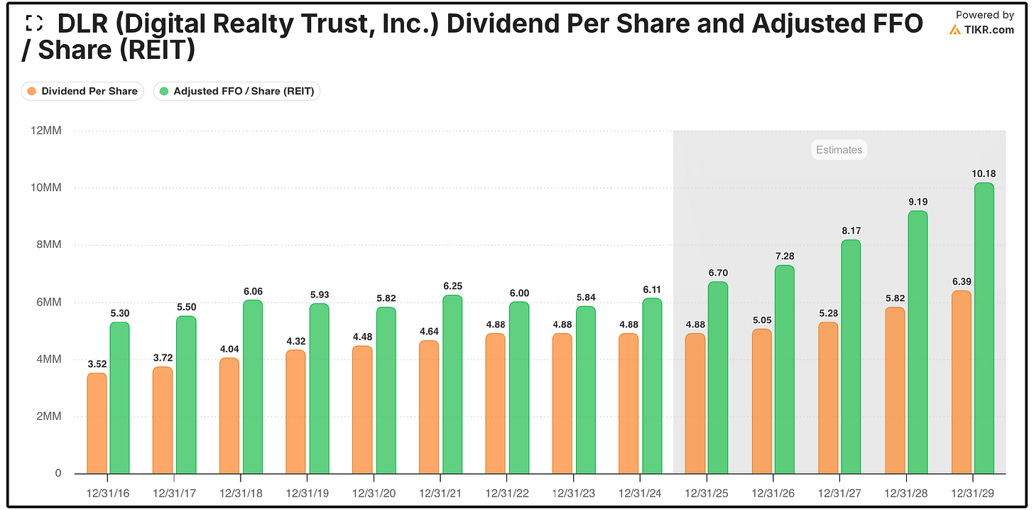 With that being said, DLR is projected to grow AFFO per share at one of the fastest rates out of the majority of REITs in the market.