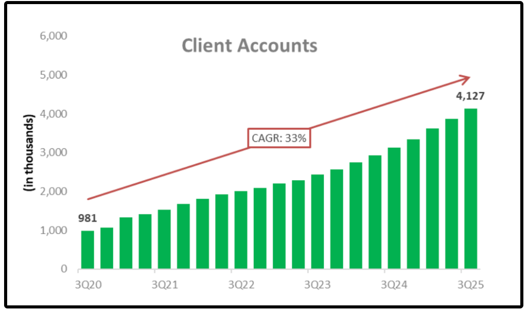 This is why client accounts have grown at a staggering 33% CAGR since Q3 of 2020.