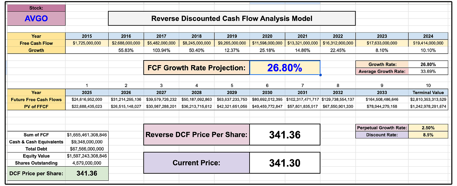 From a valuation perspective, the market is currently pricing in a 26.8% free cash flow compounded annual growth rate over the next decade.