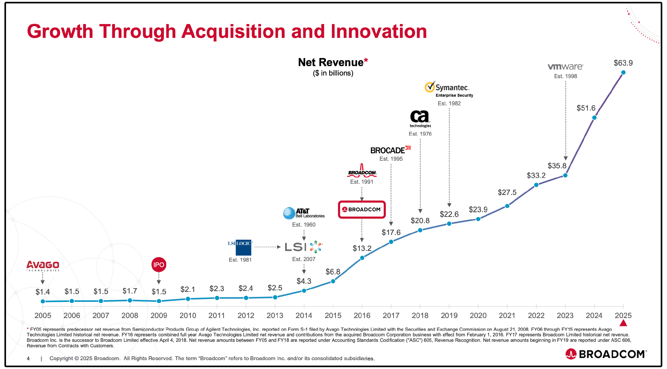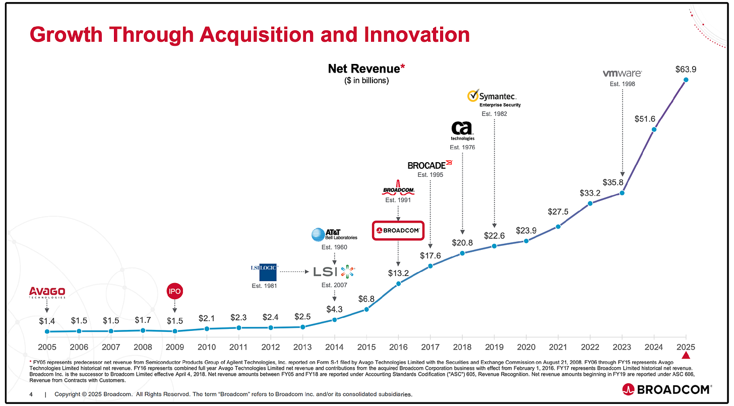 Much of Broadcom’s growth over the past couple of decades has been from successful acquisitions.