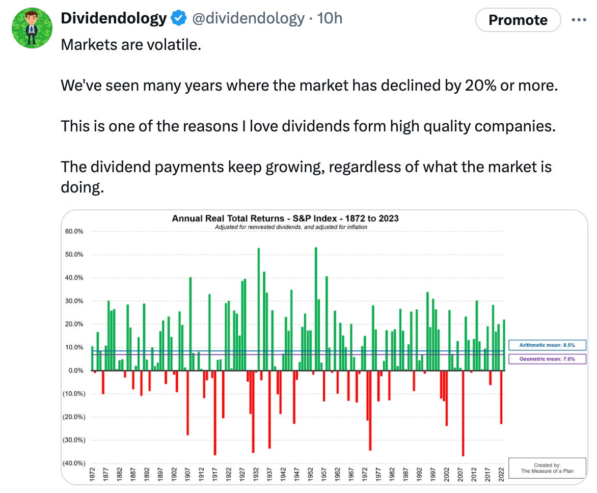 This now means that regardless of how much capital I contribute to my portfolio on a monthly basis, I’ll still have $500 on average every month being reinvested right back into my portfolio.