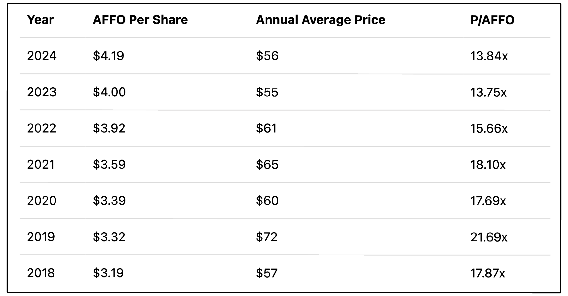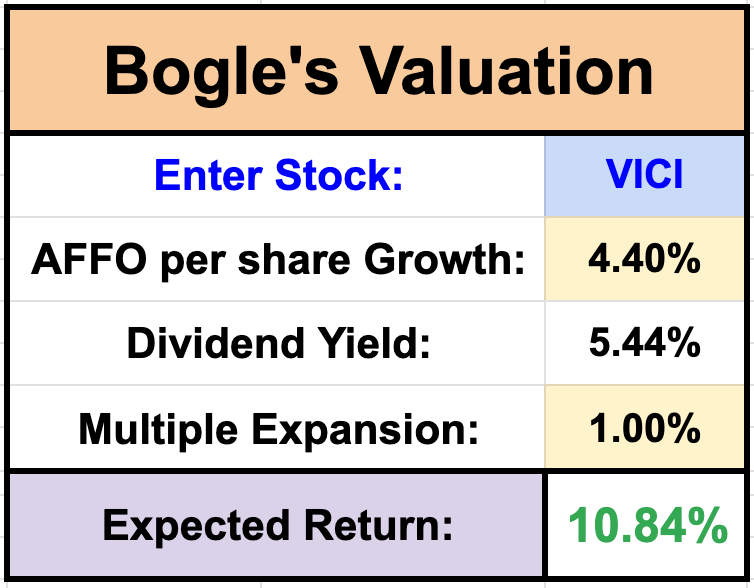 With AFFO per share growth of ~4.4%, a dividend yield of 5.4%, and modest multiple expansion, thatās ~11%+ annualized returns.