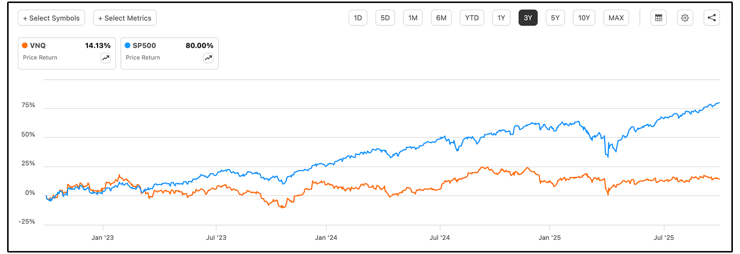 Like mentioned above, although REITs have been underperforming in the last 3 years-