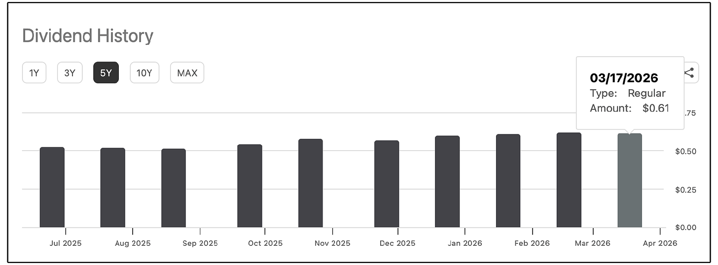 As a result of low portfolio options coverage, this ETF has been able to actually grow their distributions over time.