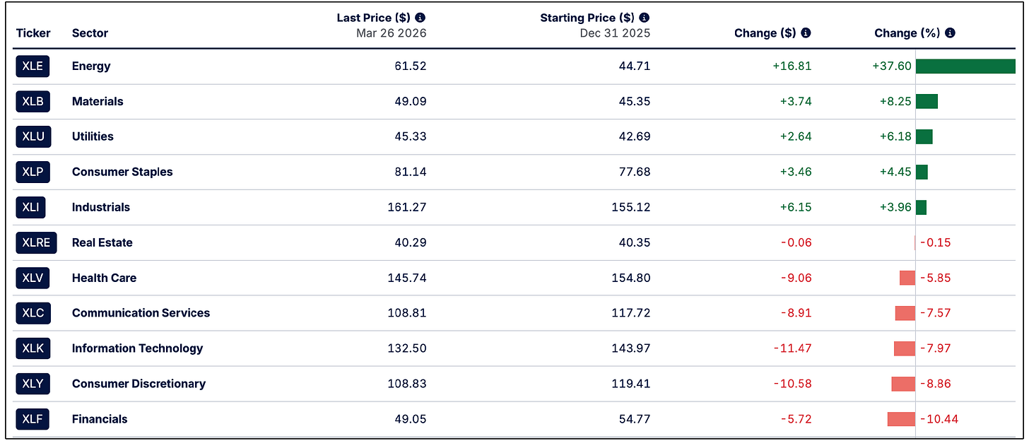 The energy sector has grown 37.6% year to date, while the S&P 500 is down by over 6%.