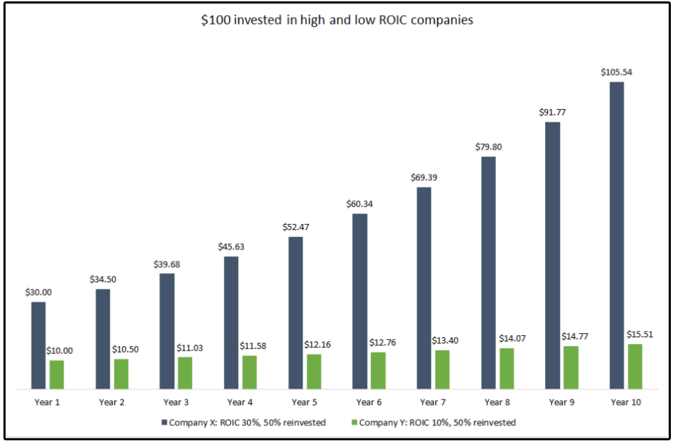 A company earning 30% ROIC against a 10% WACC is a compounding machine.
