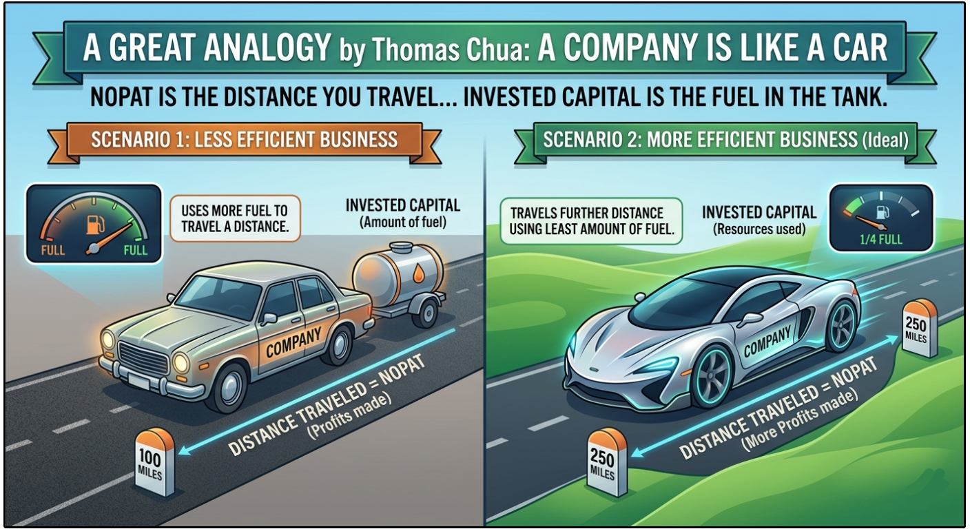 Invested Capital is the amount of fuel in the tank (the resources used to generate that profit).