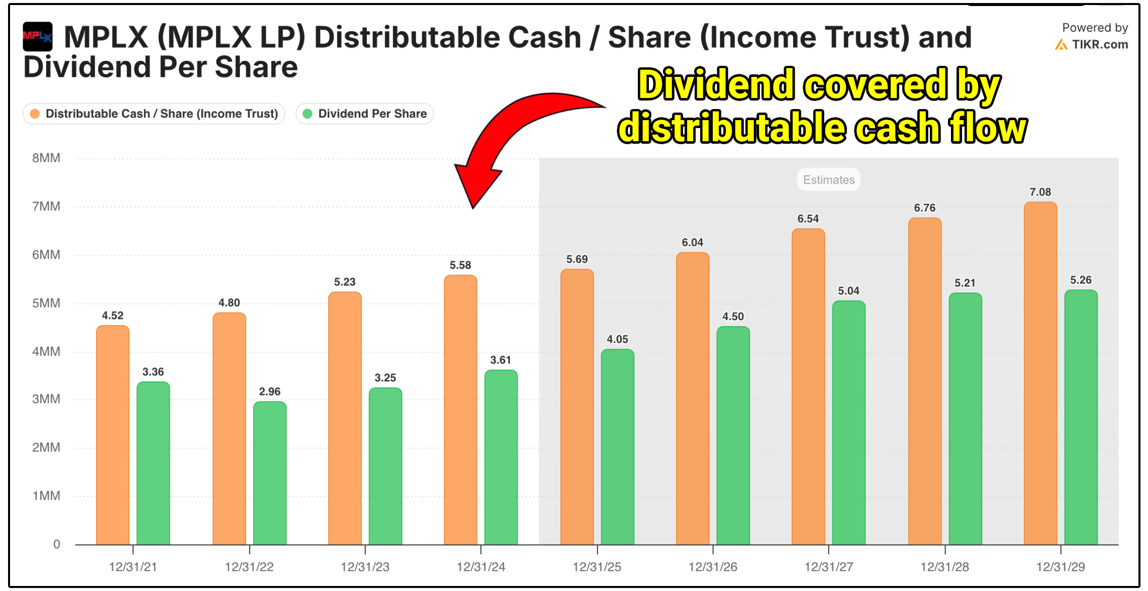 The MPLX dividend is well-covered by distributable cash flow, with a current coverage ratio of 1.5x