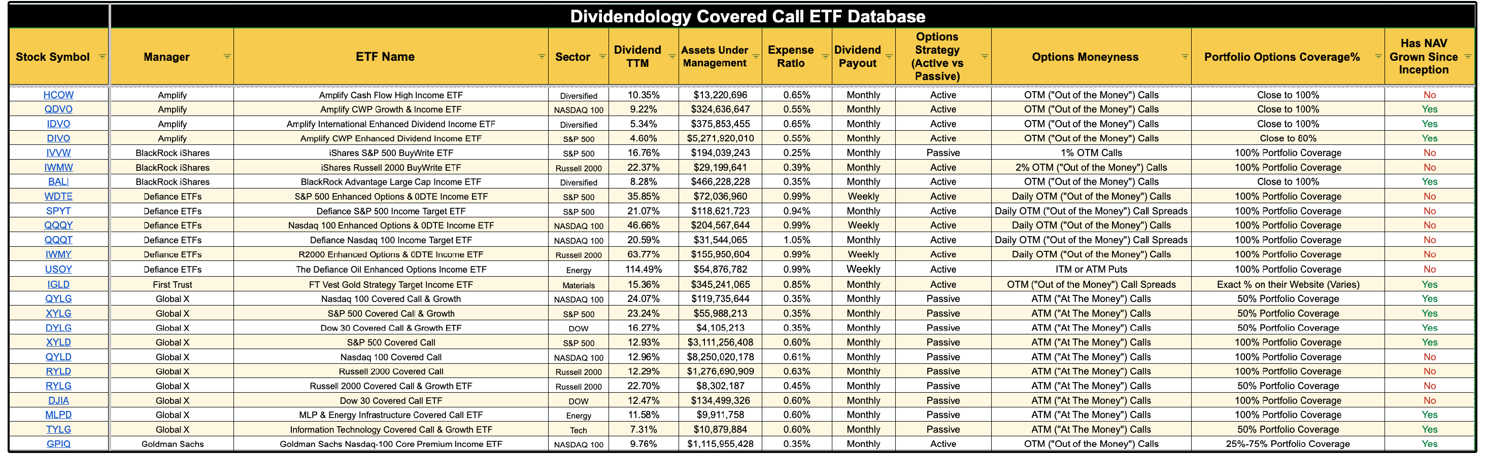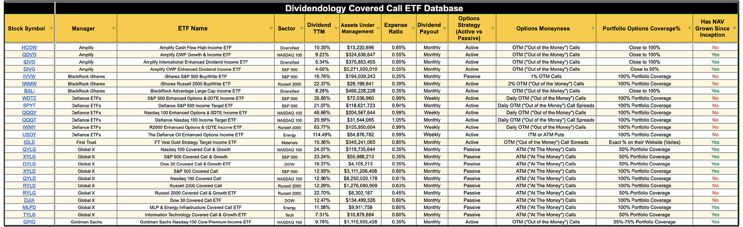 This is why we built the Dividendology Covered Call ETF Database.