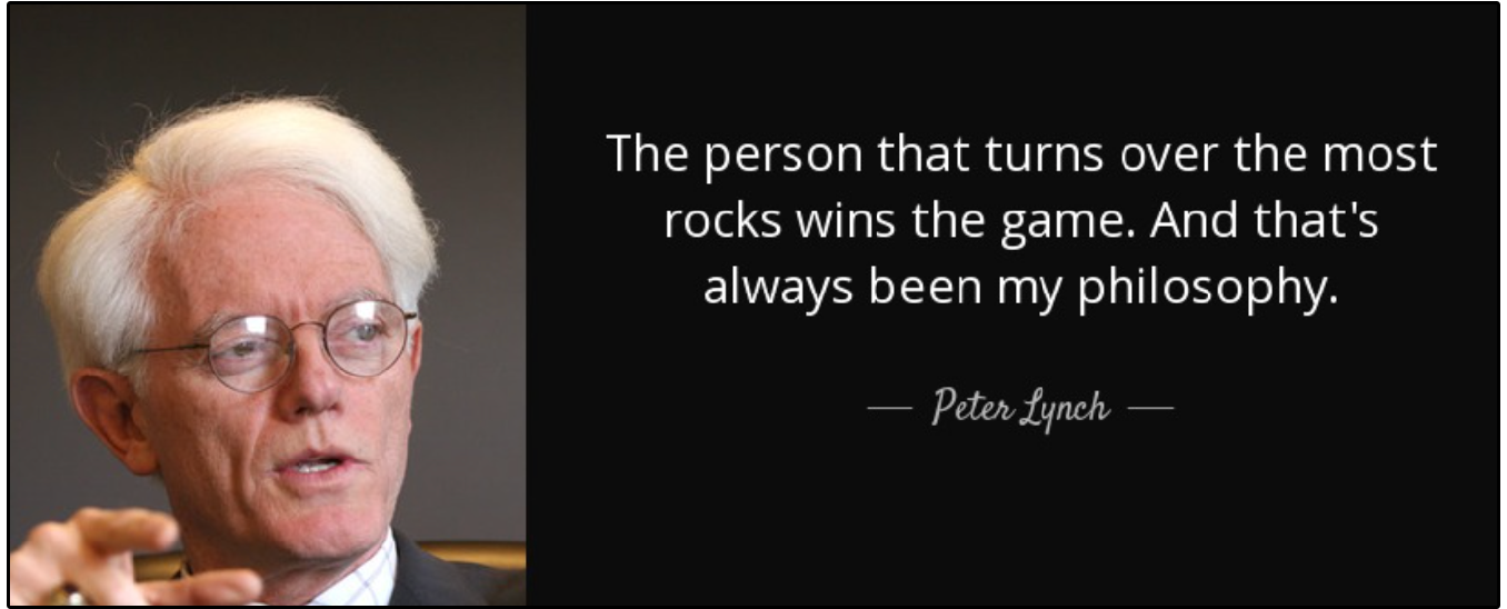 “The person that turns over the most rocks wins the game” - Peter Lynch