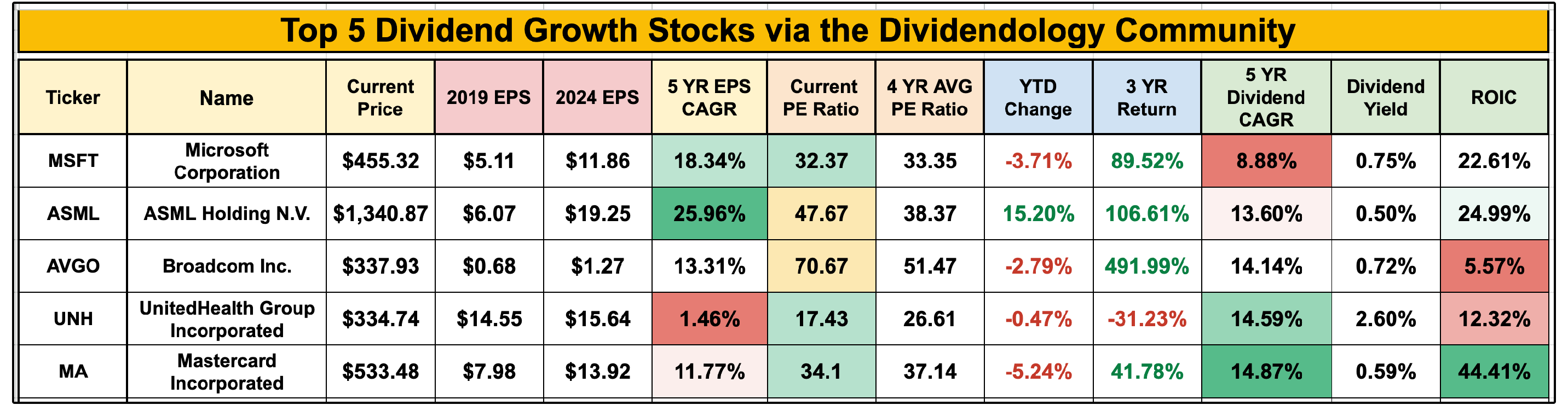 💎 The Top 5 Dividend Growth Stocks