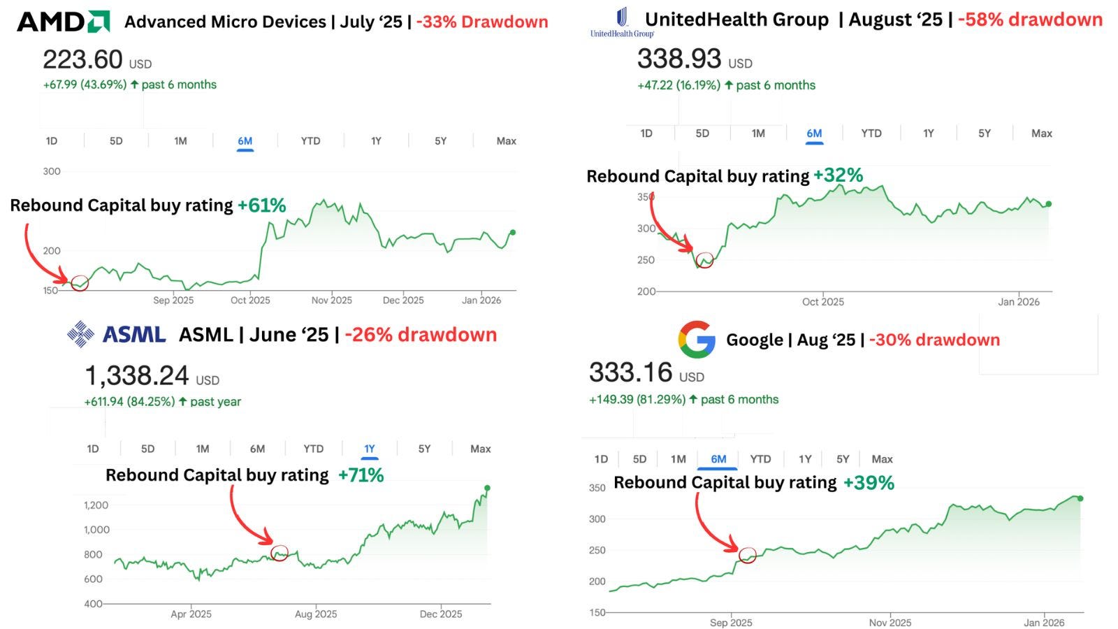 Every world-class company suffers deep drawdowns. Rebound Capital identifies high-quality companies undergoing drawdowns to capitalize on their eventual rebound.