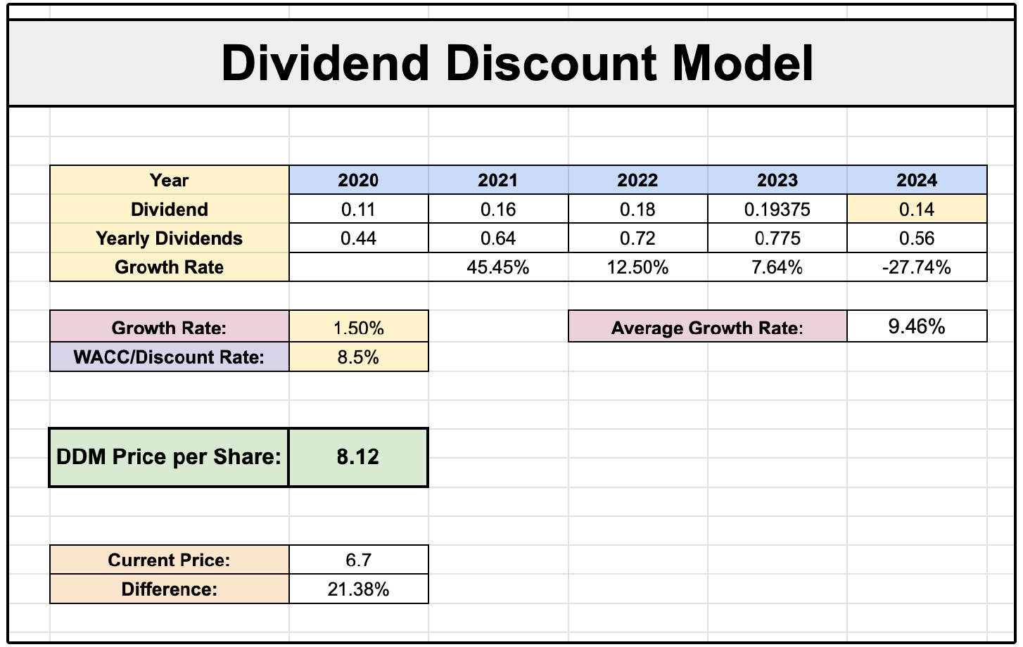 For example, just 1.5% dividend growth moving forward would imply over 21% upside.