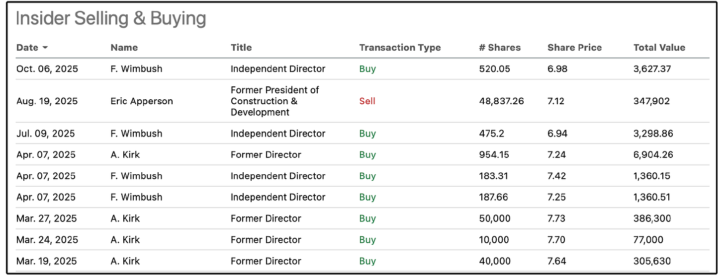 Significant insider buying since restructuring (insiders own 10%+ of the comapny!)