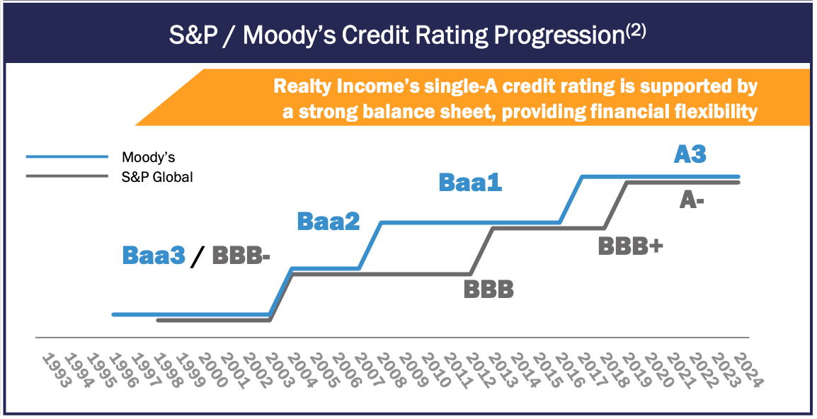 68% of tenants are investment grade (higher than Realty Income)