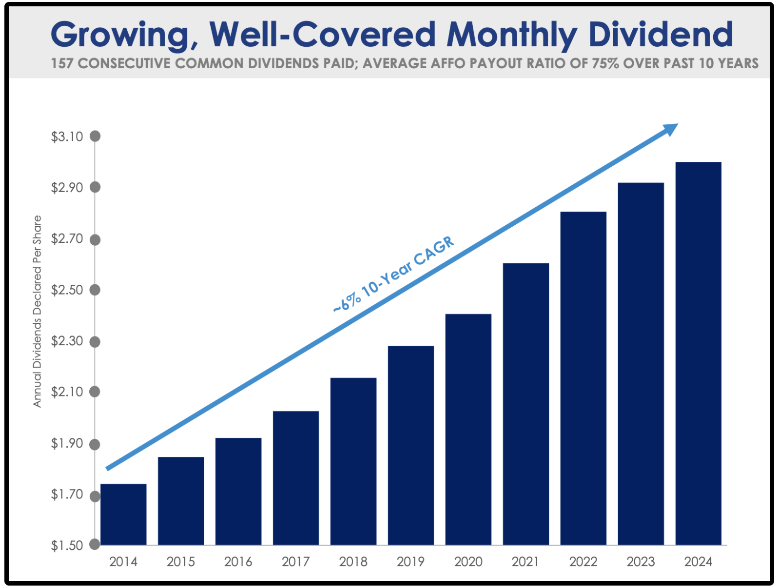 Dividend Yield: ~4.1% | Sector: REIT | Dividend Growth: ~6% CAGR
